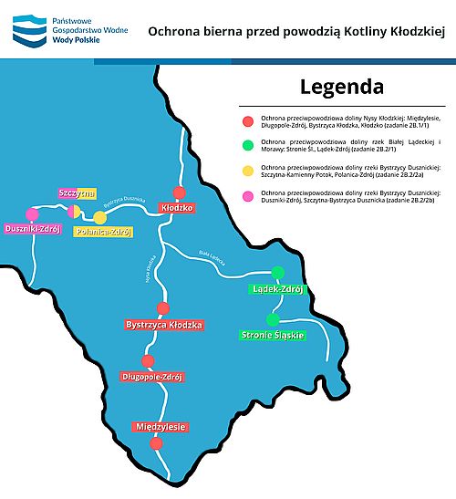 "Działania są prowadzone w ramach Projektu ochrony przeciwpowodziowej w dorzeczu Odry i Wisły, realizowanego przez Wody Polskie, który jest współfinansowany przez Bank Światowy, przy wsparciu ze środków Międzynarodowego Banku Odbudowy i Rozwoju, Banku Rozwoju Rady Europy oraz ze środków budżetu państwa. W najbliższym czasie Wody Polskie RZGW we Wrocławiu planują również podpisanie umowy na realizację zadania pod nazwą "Ochrona przeciwpowodziowa doliny rzek Białej Lądeckiej i Morawy: Stronie Śląskie, Lądek-Zdrój (zadanie 2B.2/1)".