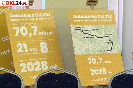 (Inf. zewn.). Samorząd Województwa Dolnośląskiego rozpoczyna jedną z kluczowych inwestycji odbudowy infrastruktury po wrześniowej powodzi z 2024 roku. Podpisana została umowa na kompleksową modernizację drogi wojewódzkiej nr 392 na odcinku Żelazno – Lądek-Zdrój – Stronie Śląskie, która ucierpiała najdotkliwiej podczas kataklizmu. Wartość kontraktu wynosi ponad 70 mln zł, a prace potrwają 24 miesiące.