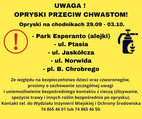 (Inf. zewn.). Magistrat w Kłodzku zdecydował o chemicznym zwalczaniu chwastów na kolejnych obszarach miasta. Tym razem wskazano następujące miejsca: