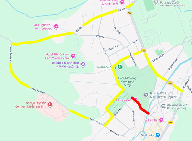 Mieszkańcy i goście Polanicy-Zdroju, a także pacjenci Specjalistycznego Centrum Medycznego, proszeni są o zachowanie szczególnej ostrożności i stosowanie się do wprowadzonego oznakowania drogowego. Osoby planujące wizytę w szpitalu muszą uwzględnić możliwe utrudnienia w ruchu - objazdy w połączeniu z remontem ul. Kłodzkiej mogą znacząco wydłużyć czas dojazdu do placówki. Zalecany dojazd prowadzi od strony drogi krajowej nr 8 i Hotelu Polanica, ulicami: Górską do Jana Pawła II, lub alternatywnie - od Szalejowa Górnego z ul. Kłodzkiej w ul. Tranzytową, następnie Zdrojową, Ogrodową, Cichą, Parkową, Józefa Matuszewskiego i Kryniczną do ul. Jana Pawła II.