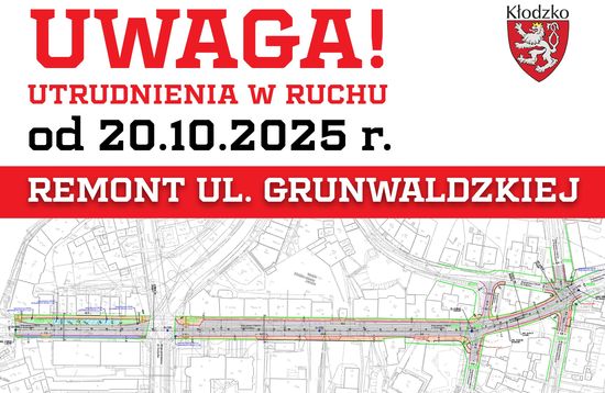 (Inf. zewn.). Bardzo ruchliwa ulica Grunwaldzka w Kłodzku od najbliższego poniedziałku, tj. 20 bm. zostanie wyłączona z powszechnego ruchu kołowego. Ma to związek z rozpoczynającym się jej remontem na sporym odcinku, bo od skrzyżowania z ulicami: Lutycką, Połabską i pl. Jedności (od wiaduktu kolejowego), po skrzyżowanie z ulicami Więźniów Politycznych i Sienkiewicza (w sąsiedztwie siedziby spółki ZAMG).