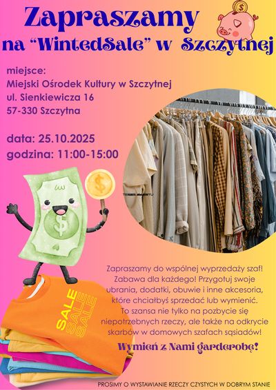 MOK zaprasza 25 bm. od godz. 11:00 na wyprzedaż lub kupno tego, co zbędnego zalega w szafach:
