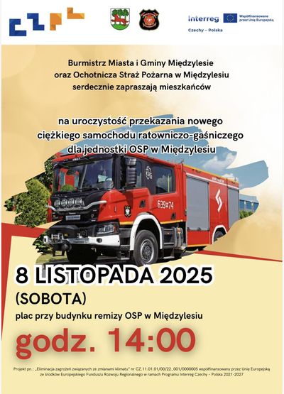 Oficjalne przekazanie nowego nabytku w użytkowanie OSP w Międzylesiu nastąpi 8 listopada br. o godz. 14:00 na placu przed remizą.