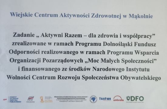 (Inf. zewn.). Od kilku dni mieszkańcy Mąkolna w gminie złotostockiej mają swoje Wiejskie Centrum Aktywności Zdrowotnej. Uznali, że wiele dobrego może także zadarzyć się w mniejszych środowiskach i stać się ciekawą dla nich ofertą.