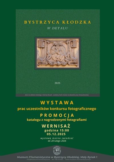 Muzeum Filumenistyczne zaprasza na wernisaż wystawy pokonkursowej "Bystrzyca w detalu". Podczas wydarzenia, które odbędzie się w piątek, 5 bm. zaprezentowany zostanie katalog wystawy, przygotowany z myślą o miłośnikach sztuki, fotografii i lokalnych histori: