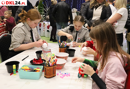 Na placu ustawiono dużą scenę oraz przestronny namiot, w którym można było znaleźć szeroki wybór świątecznych wyrobów. Od lokalnych przetworów, przez domowe wypieki, aż po rękodzielnicze ozdoby i pamiątki - wszystko to przygotowali mieszkańcy gminy, w szczególności Koła Gospodyń Wiejskich, lokalni artyści oraz rzemieślnicy. W namiocie nie zabrakło również ciepłych dań i bezalkoholowego grzańca, które skutecznie rozgrzewały odwiedzających. Na scenie odbywały się występy artystyczne - w tym koncerty kapeli „Zbójnicy”, zespołu „Fama” oraz prezentacje dzieci i młodzieży z gminy i 5 Drużyny Harcerskiej Twierdza. Harcerze - jak co roku - aktywnie włączyli się w przygotowanie jarmarku, pełniąc funkcje wolontariuszy, animatorów i artystów.