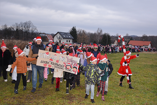 (Inf. wł.). Marsz Mikołajów „Razem dla Justynki - każdy krok ma znaczenie”, występy dzieci, kiermasz i iluminacja - w sobotę, 6 grudnia w Jaszkowej Dolnej rozświetlono Wioskę Świąteczną.