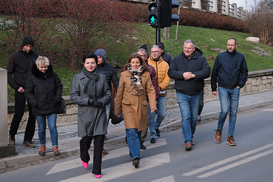 W poniedziałek, 15 bm. odbył się oficjalny odbiór nowego przejścia dla pieszych wraz ze schodami prowadzącymi w stronę kładki przy ulicy Floriańskiej. Sygnalizacja działa w trybie sekwencyjnym - pieszy uruchamia zielone światło przyciskiem, a dodatkowy sygnał dźwiękowy wspomaga osoby z niepełnosprawnościami. W ramach prac przebudowano również kolektor deszczowy, odprowadzający wody opadowe z ulic Kupieckiej i Międzyleśnej.