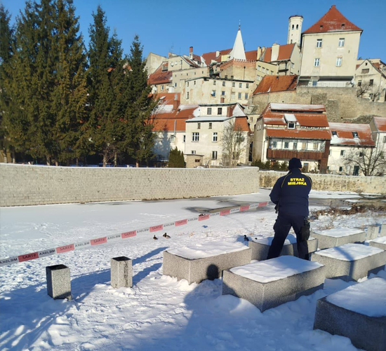 Podczas patrolu w rejonie mostu przy ul. Floriańskiej w Bystrzycy Kłodzkiej strażnicy miejscy zauważyli ślady na lodzie, świadczące o obecności osób na zamarzniętej Nysie Kłodzkiej. W związku z zagrożeniem zabezpieczono teren oraz przeprowadzono działania prewencyjne, przestrzegając dzieci i młodzież przed wchodzeniem na zamarznięte akweny.
