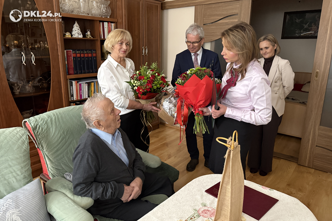 W czwartek, 15 bm. burmistrz Międzylesia Tomasz Korczak, zastępczyni kierownika Urzędu Stanu Cywilnego Daria Bartkowska oraz kierowniczka Inspektoratu ZUS w Kłodzku Monika Machnik odwiedzili p. Stanisława Kurenia, by osobiście złożyć mu życzenia z okazji jego 100. urodzin. Podczas spotkania wręczono listy gratulacyjne, kwiaty oraz upominki. Jubilat przyjął gości w obecności córki Danuty Strychacz i najstarszej wnuczki Wioletty Strychacz.