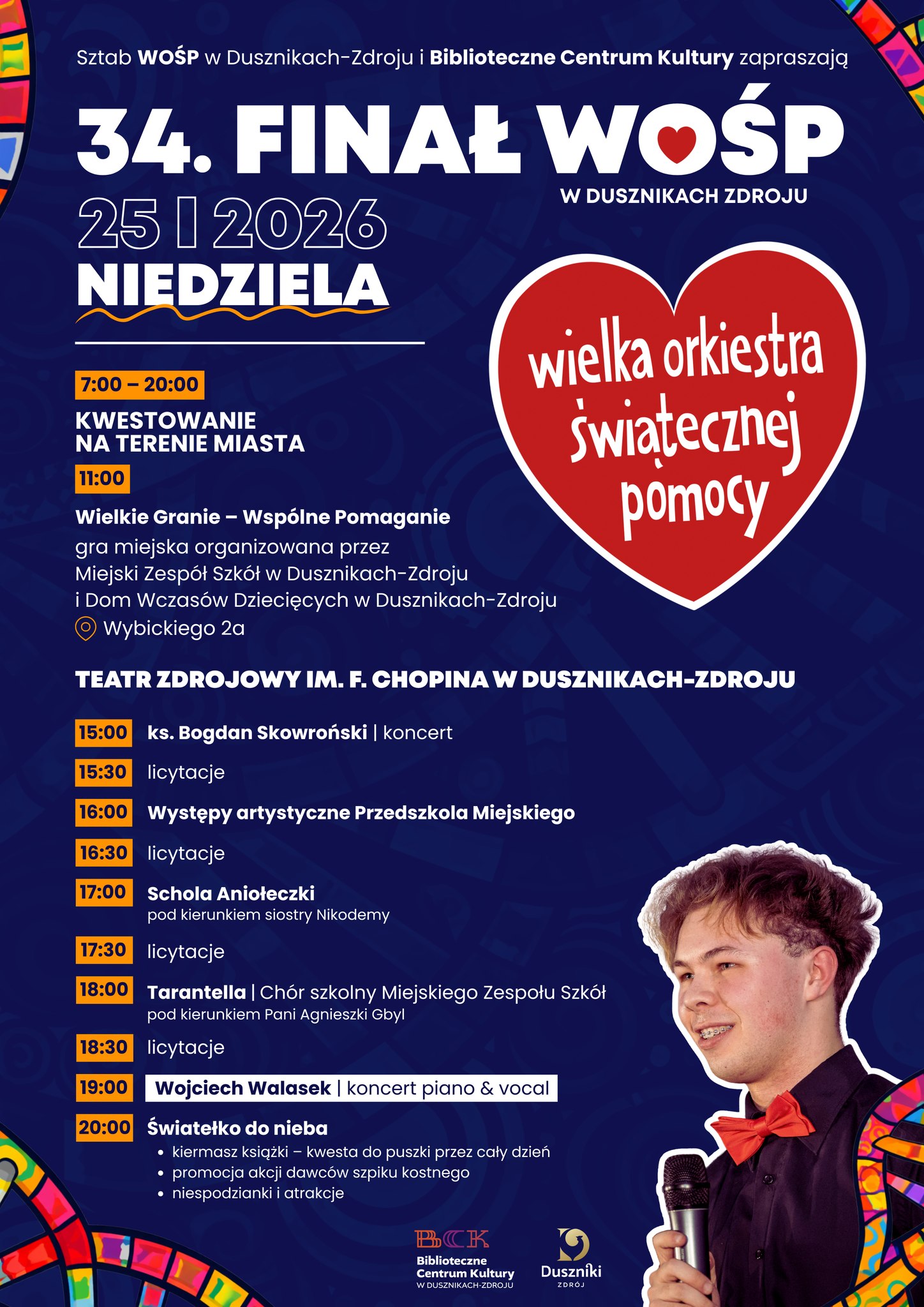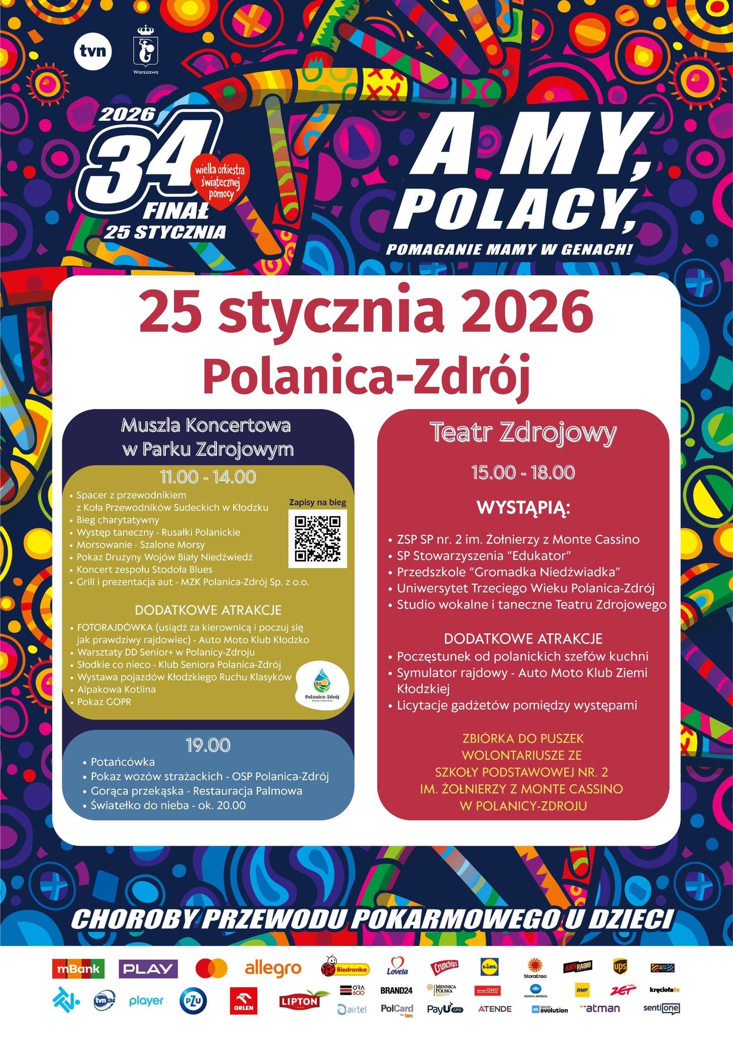 (Inf. wł.). Najbliższy weekend upłynie pod znakiem solidarności, muzyki i dobra - wszystko za sprawą 34. Finału Wielkiej Orkiestry Świątecznej Pomocy. Tegoroczne hasło „Zdrowe brzuszki naszych dzieci” skupia uwagę na potrzebach małych pacjentów z chorobami przewodu pokarmowego. "Orkiestra" zagra również w wielu miejscowościach ziemi kłodzkiej i ząbkowickiej - sprawdziliśmy, gdzie warto dołączyć do wspólnego grania. Nie zabraknie również innych wydarzeń - w tym także o charakterze charytatywnym: