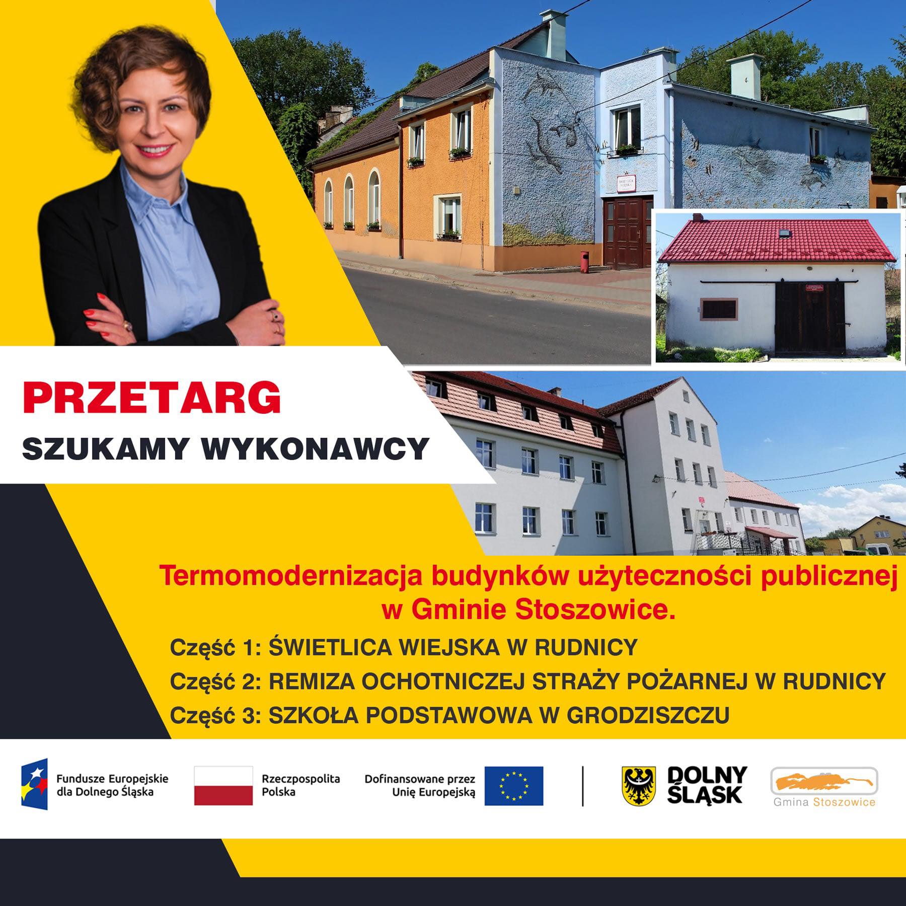 Zadanie pod nazwą „Termomodernizacja budynków użyteczności publicznej w Gminie Stoszowice” obejmuje trzy części: Świetlicę Wiejską w Rudnicy, Remizę OSP w Rudnicy oraz Szkołę Podstawową w Grodziszczu. Jak poinformowała wójtka Katarzyna Ruszkowska, inwestycja będzie współfinansowana ze środków Unii Europejskiej.