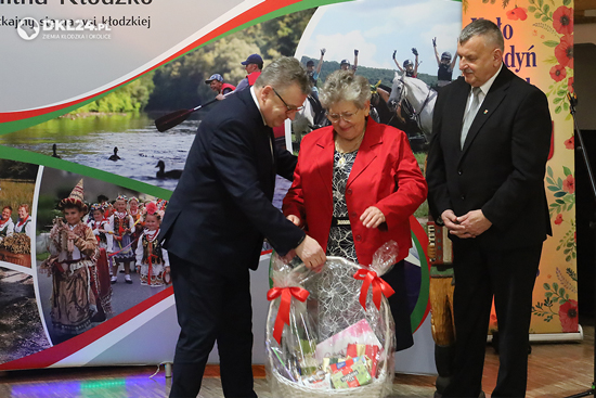Halina Puk odbiera okolicznościowy kosz