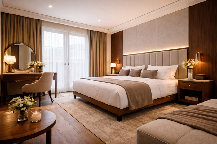OptiHotel zapewnia kompleksowe doradztwo oraz realizację wyposażenia - od łóżek hotelowych i mebli pokojowych, po tapicerowane zagłówki, loże restauracyjne oraz zabudowy dopasowane do charakteru i stylistyki obiektu.