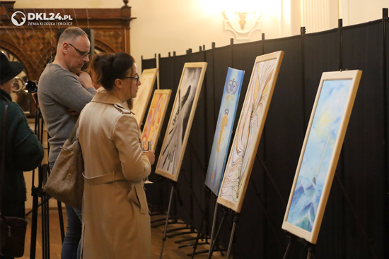 – Chętnych było bardzo dużo, około 500 osób, ale niestety musiałam zrobić selekcję, bo z powodów ograniczonego miejsca tutaj w muzeum nie dało się wszystkich pomieścić – wyjaśniła L. Nowicka i dodała: Ojciec Albert Krzywański, proboszcz naszej parafii wambierzyckiej, zrobił wspaniały gest i użyczył nam powierzchni tej sali balowej na potrzeby wernisażu. Wyszło to wszystko bardzo pięknie.