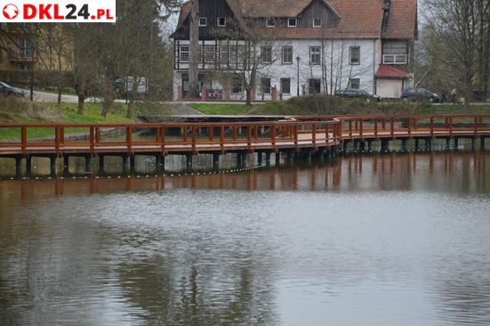 (Inf. wł.). Filip Jarczewski z firmy Telos jest projektantem drewnianego pomostu wykonanego na stawie w parku Zdrojowym. Budowla połączyła dwa przeciwległe brzegi, wijąc się na kilkudziesięciometrowej długości. Zostanie udostępniona niebawem, ale jeszcze wymaga wykonania prac z zakresu tzw. małej architektury. Pojawią się na niej ławeczki, kwiaty, zostanie oświetlona.