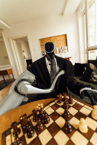 Humanoidalny robot w garniturze i neonowym hełmie stał się rozpoznawalną postacią polskiej sceny internetowej. W materiałach tworzonych wspólnie z Reksiem łączy robotykę, humor i nowoczesne technologie.