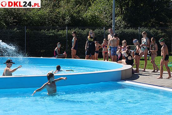 MIĘDZYLESIE (inf. wł.). Przez kilka sobotnich godzin gminny basen kąpielowy służył za duże pole dla różnorodnych konkurencji o charakterze rekreacyjnym i zabawowym. Przede wszystkim zostały skierowane do dzieci i młodzieży, ale okazało się, że w ten scenariusz chętnie wpisali się dorośli uczestnicy.