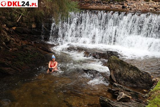 Panią Agnieszkę z Gorzowa Wielkopolskiego spotkaliśmy przy wodospadzie w Młotach. Temperatura powietrza na zewnętrz akurat wynosiła minus 4 st. C, wody w Bystrzycy Łomnickiej - nieco więcej, ale co tam. Frajda to frajda i można powiedzieć, że nowy sezon takich zanurzeń w Młotach czy górnych Bielicach, w Białej Lądeckiej, już się rozkręca.