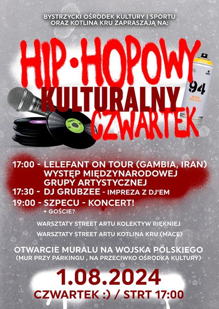 Najbliższy "Kulturalny Czwartek" przy bystrzyckim ratuszu zdominuje hip-hop. Oj, będzie tanecznie i dynamicznie. A więc do zobaczenia 1 sierpnia od godz. 17:00.