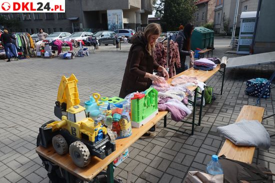 (Inf. wł.). W sobotnie przedpołudnie na placu parkingowym przy ośrodku kultury spory ruch. Ze stojących samochodów przede wszystkim kobiety wyciągają przywiezione przez siebie rzeczy, które już za moment staną się przedmiotami sprzedaży za symboliczną cenę. Zamiast trafić do kubła bądź nadal zalegać w mieszkaniach, tu dostają drugą szansę swojej przydatności.