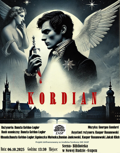 (Inf. zewn.). W poniedziałek, 6 października 2025 roku, uczniowie klas IIa i IIb Liceum Ogólnokształcącego im. Henryka Sienkiewicza w Nowej Rudzie uczestniczyli w niezwykłym wydarzeniu artystycznym. W sali Filii Miejskiego Ośrodka Kultury w Nowej Rudzie-Słupcu wystąpił Ogólnopolski Teatr William-Es z poruszającą interpretacją dramatu Juliusza Słowackiego „Kordian”. Spektakl zrealizowano na zaproszenie Noworudzkiego Uniwersytetu Trzeciego Wieku, a jego prezentacja była możliwa dzięki dofinansowaniu ze środków Funduszu SKE ZASP oraz wsparciu Rady Rodziców Liceum.