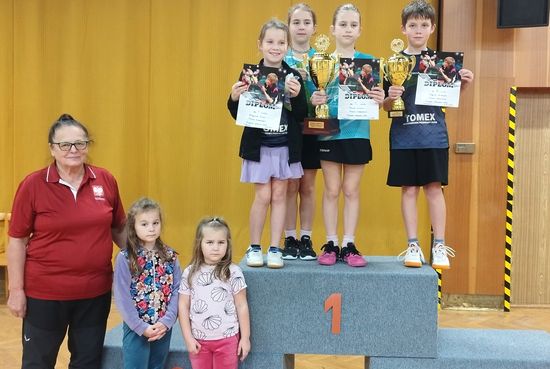 Na mocnych rywali natrafili żacy i żaczki w Dobrem, gdzie odbywał się turniej tenisa stołowego. Przyszło im rywalizować z partnerami z czeskich klubów, m.in. ze Sparty Pragi, Hradca Kralove i in. Liliana Tomera z Orląt zajęła pierwsze miejsce, Grzegorz Bogunia był drugi, Alicja Bogunia wywalczyła 7 miejsce, a Natalia Tomera - 13.
