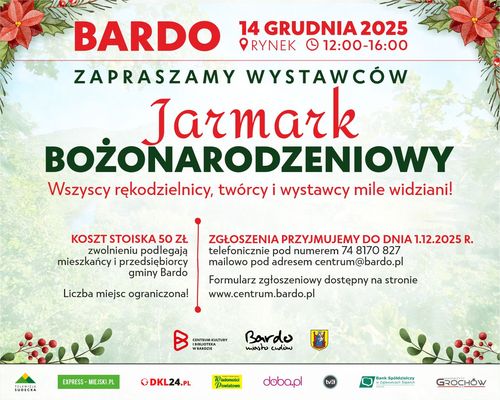 Centrum Kultury i Biblioteka już rozpoczęło przygotowania do jarmarku bożonarodzeniowego. Do 1 grudnia br. przyjmuje zgłoszenia od przedsiębiorców zainteresowanych udziałem w tym wydarzeniu: