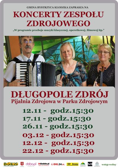 Najbliższy koncert Zespołu Zdrojowego w Długopolu-Zdroju już 12 bm. od godz. 15:30. Znane są daty kolejnych prezentacji muzycznych: