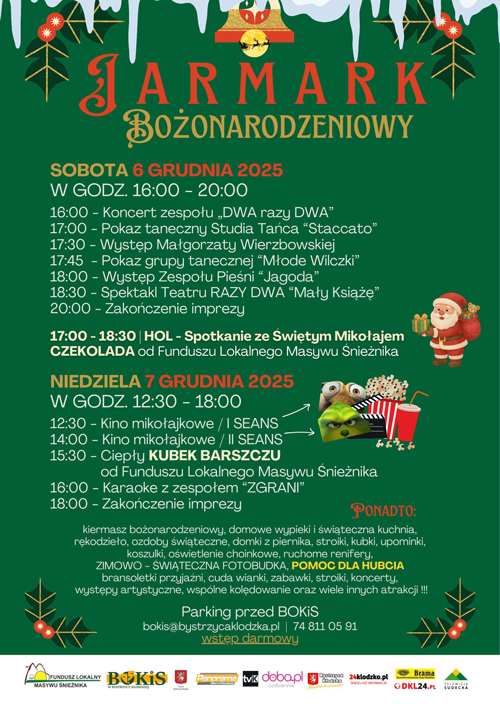 Srebrnogórski Jarmark Bożonarodzeniowy odbędzie się w sobotę, 6 grudnia na placu przy SPA „Aniołek”, w godz. 14:00–17:00, oferując regionalne smakołyki, rękodzieło i świąteczne inspiracje. .jpg)