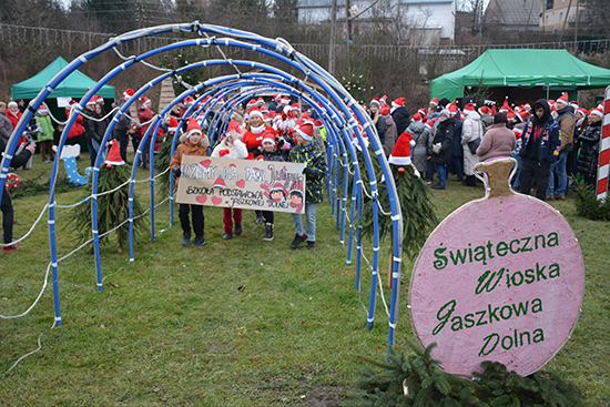 Po powrocie do centrum wsi rozpoczęło się uroczyste otwarcie Wioski Świątecznej. Uczestnicy mogli skorzystać z atrakcji przygotowanych przez organizatorów: świątecznego kiermaszu pełnego przysmaków i rękodzieła, warsztatów plastycznych dla dzieci, rozgrzewającego ogniska oraz koncertu kapeli „Ogniści Harnasie”. Szczególnym momentem były występy przedszkolaków i uczniów Szkoły Podstawowej w Jaszkowej Dolnej, które poprzedziły wspólne odliczanie i rozświetlenie świątecznej iluminacji. Kulminacją dnia było przybycie świętego mikołaja, który dostarczył dzieciom wiele radości.
