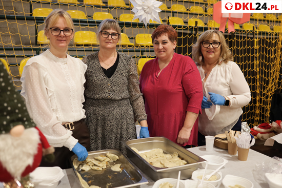 Część kulinarna, w której dominowały tradycyjne potrawy - pierogi, barszcz czerwony, bigos z dziczyzną oraz domowe ciasta - zapewniła energię do wspólnej zabawy, kolędowania i innych atrakcji. Dużym zainteresowaniem cieszył się worek pełen słodyczy od św. mikołaja, który wywołał uśmiech nie tylko na twarzach najmłodszych uczestników. Równolegle tworzony był świąteczny łańcuch (symbol jedności mieszkańców), a na stołach wypełniano kartki ciepłymi życzeniami.