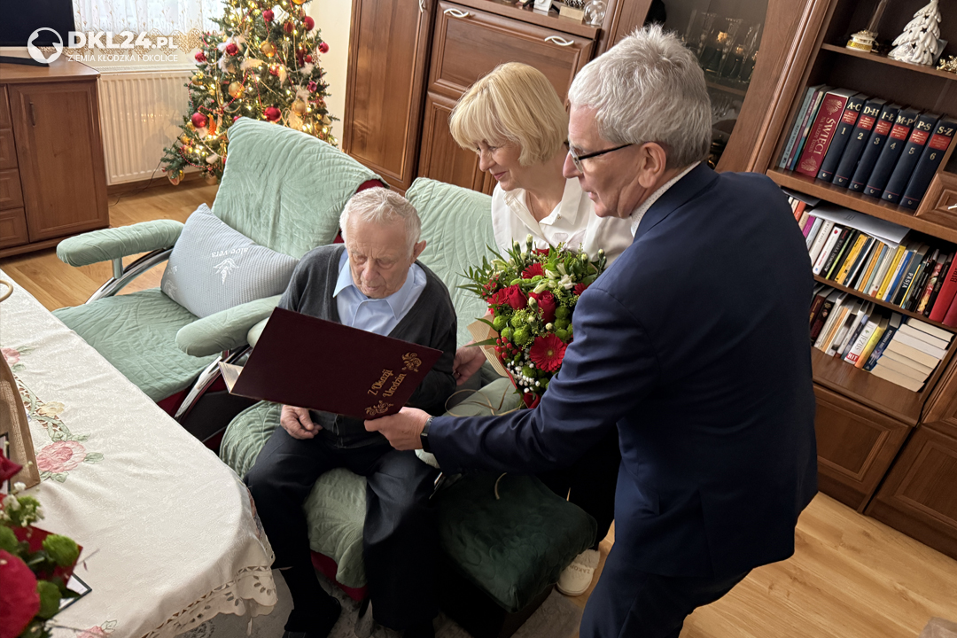 W czwartek, 15 bm. burmistrz Międzylesia Tomasz Korczak, zastępczyni kierownika Urzędu Stanu Cywilnego Daria Bartkowska oraz kierowniczka Inspektoratu ZUS w Kłodzku Monika Machnik odwiedzili p. Stanisława Kurenia, by osobiście złożyć mu życzenia z okazji jego 100. urodzin. Podczas spotkania wręczono listy gratulacyjne, kwiaty oraz upominki. Jubilat przyjął gości w obecności córki Danuty Strychacz i najstarszej wnuczki Wioletty Strychacz.
