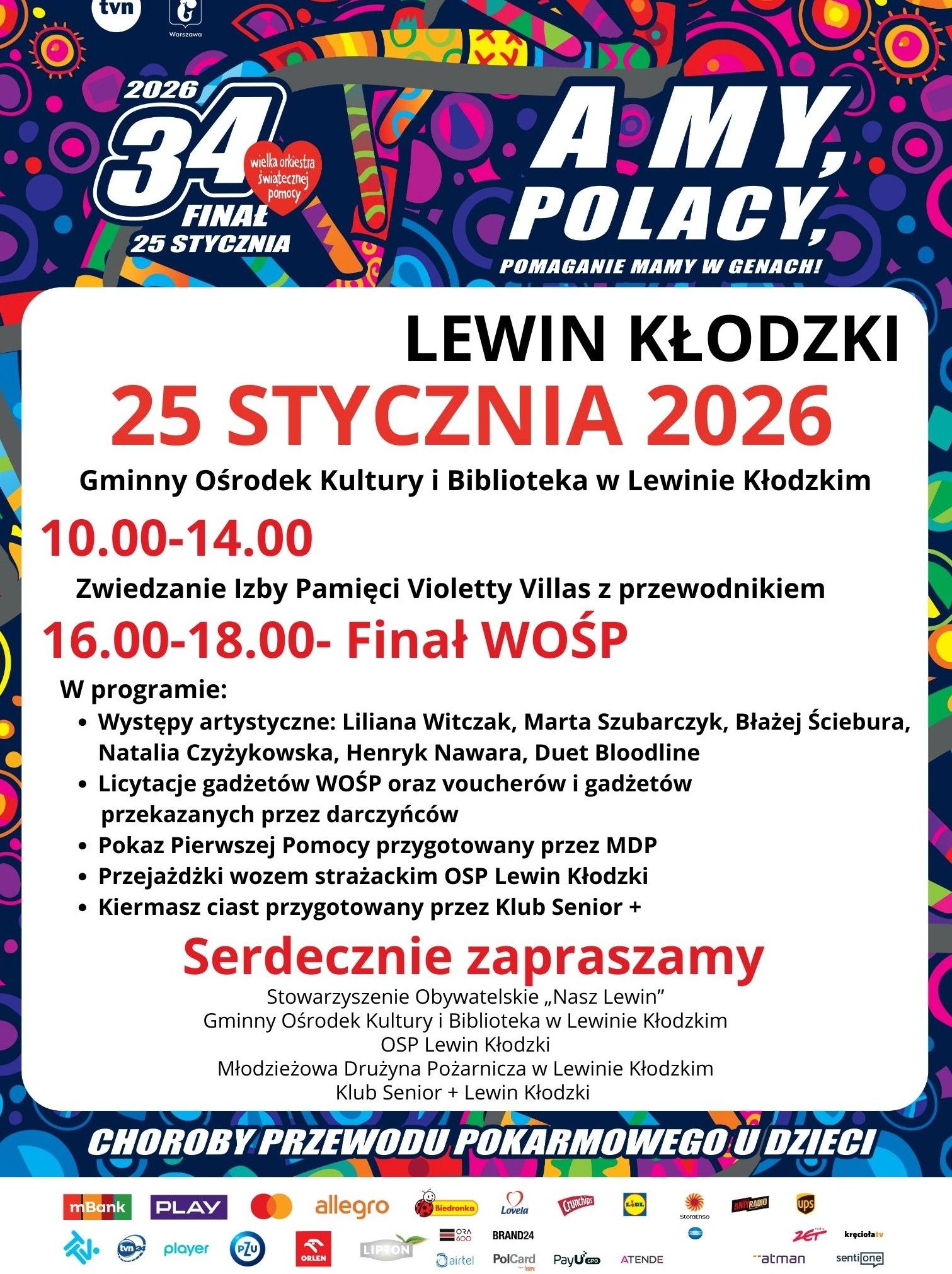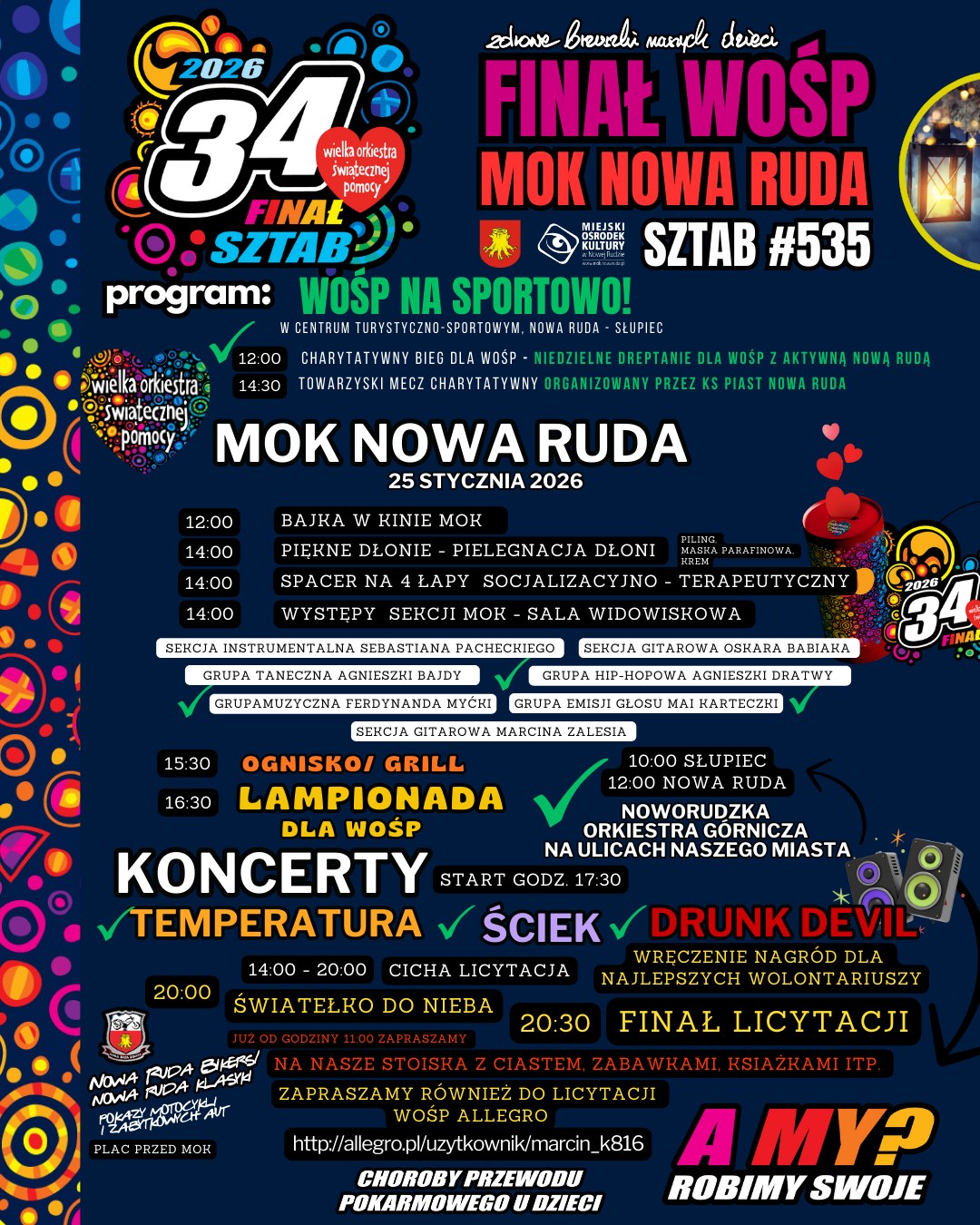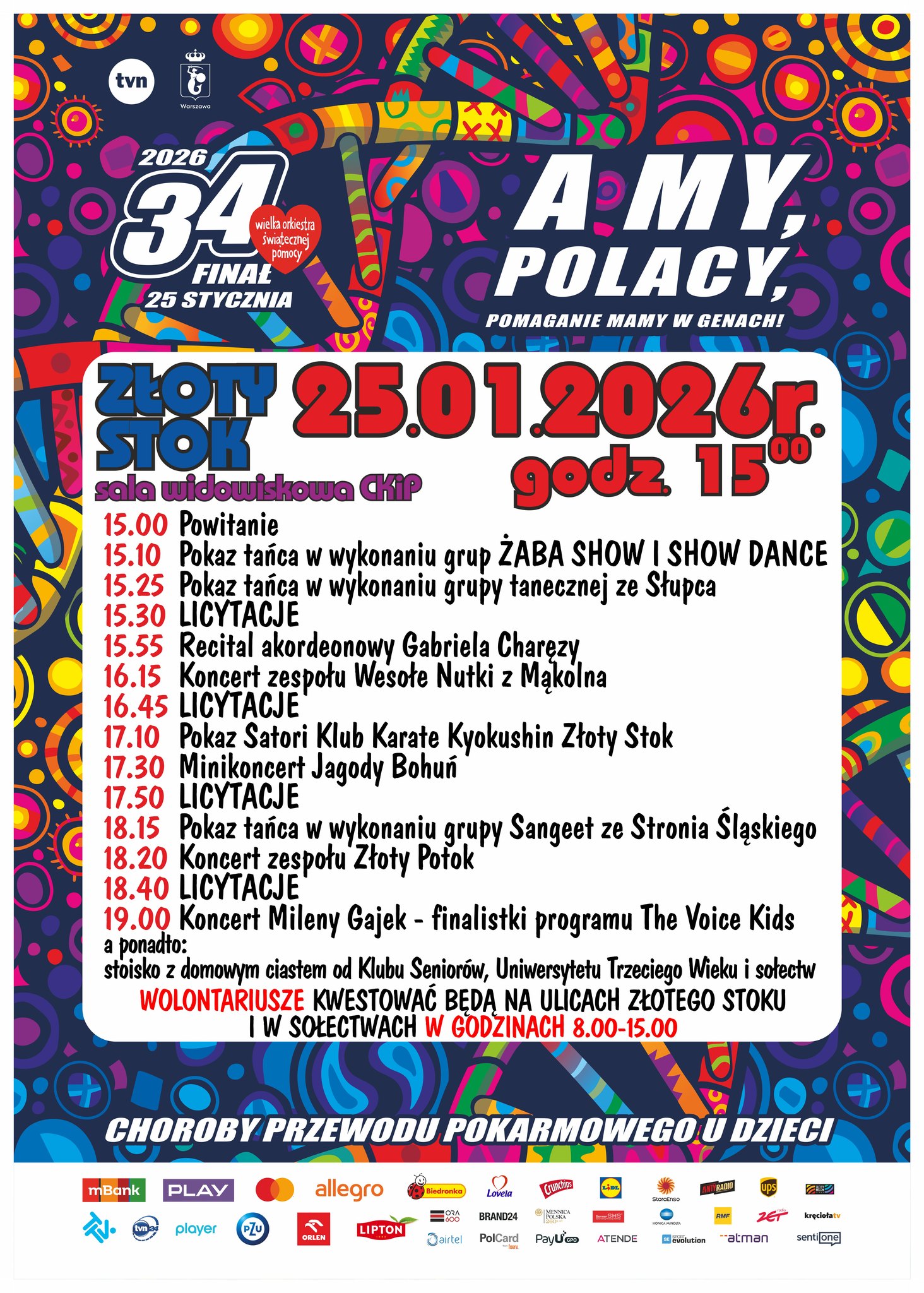 (Inf. wł.). Najbliższy weekend upłynie pod znakiem solidarności, muzyki i dobra - wszystko za sprawą 34. Finału Wielkiej Orkiestry Świątecznej Pomocy. Tegoroczne hasło „Zdrowe brzuszki naszych dzieci” skupia uwagę na potrzebach małych pacjentów z chorobami przewodu pokarmowego. "Orkiestra" zagra również w wielu miejscowościach ziemi kłodzkiej i ząbkowickiej - sprawdziliśmy, gdzie warto dołączyć do wspólnego grania. Nie zabraknie również innych wydarzeń - w tym także o charakterze charytatywnym: