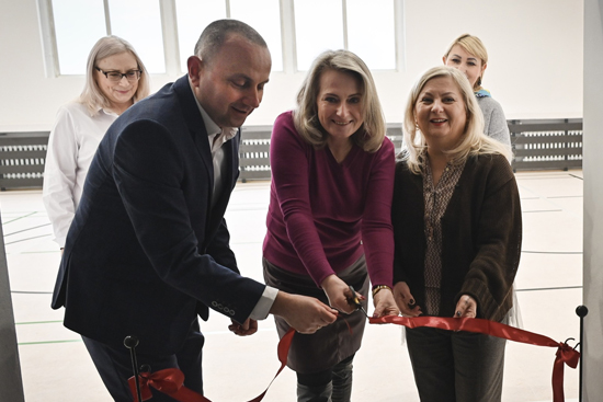 W czwartek, 19 bm. odbyło się uroczyste otwarcie wyremontowanego obiektu. Symbolicznego przecięcia wstęgi dokonała starostka kłodzka Małgorzata Jędrzejewska-Skrzypczyk wspólnie z dyrektorem szkoły Rafałem Hankusem, dyrektorką Wydziału Oświaty Starostwa Powiatowego w Kłodzku Ewą Piszczek oraz wicedyrektorkami Mariolą Bil i Sylwią Dajczer-Gałczyńską. Sala wymagała gruntownej odbudowy po zniszczeniach spowodowanych ubiegłoroczną powodzią.