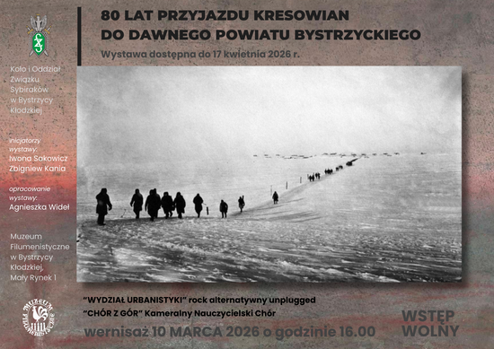 W Bystrzycy Kłodzkiej miejscowe Koło Sybiraków już wielokrotnie organizowało wystawy oraz dystrybuowało wydawnictwa poświęcone losom zesłańców, w tym grupy mieszkańców miasta i gminy. Organizowało też spotkania z młodzieżą w szkołach, inspirowało lokalne uroczystości rocznicowe. Teraz w Muzeum Filumenistycznym zostanie zaprezentowana ekspozycja pt. "80 lat przyjazdu kresowian do dawnego powiatu bystrzyckiego". Inicjatorami tego wydarzenia są Iwona Sakowicz i Zbigniew Kania, przy współpracy z muzeum. Wernisaż zaplanowano na 10 bm. o godz. 16:00 w Muzeum Filumenistycznym.
