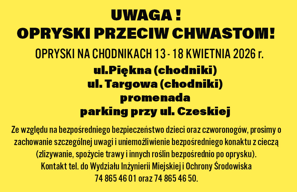 (Inf. zewn.). W dniach 13-18 kwietnia na terenie Kłodzka zaplanowano prace związane ze zwalczaniem niepożądanej roślinności. Mieszkańcy proszeni są o zachowanie szczególnej ostrożności, zwłaszcza podczas spacerów z dziećmi oraz zwierzętami domowymi.
