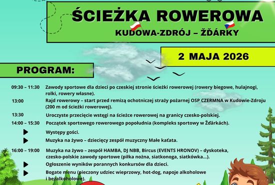 (Inf. wł.). Pomysł to nie nowy, bo rozważano go jeszcze w latach 90. poprzedniego stulecia. Chodziło o wykonanie ścieżki rowerowej, łączącej czeskie Žďárky oraz Kudowę-Zdrój. Teraz doczekał się realizacji dzięki dofinansowaniu przez Unię Europejską. Na 2 maja br. zaplanowano otwarcie tego szlaku.