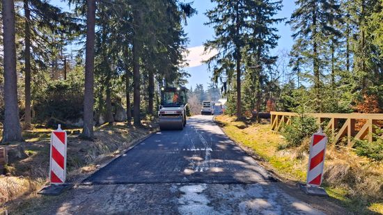 (Inf. zewn.). Firma Eurovia prowadzi modernizację drogi łączącej drogę wojewódzką Kudowa-Zdrój - Radków z Błędnymi Skałami. Odcinek przechodzi gruntowną przebudowę wieńczoną położeniem świeżej nawierzchni.