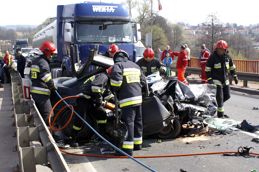 KŁODZKO. Do czołowego zderzenia tira z audi 80 (na rejestracjach z powiatu kłodzkiego) doszło po godz. 12.00 na estakadzie na krajowej „ósemce". Kierowca osobówki poniósł śmierć na miejscu. Do uderzenia musiało dojść z wielką siłą. Samochód, którym poruszała się ofiara, został doszczętnie zmasakrowany. Kierujący audi wyprzedzał busa.